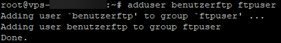 The last step is to assign the new user to the group via adduser benutzerftp ftpuser :