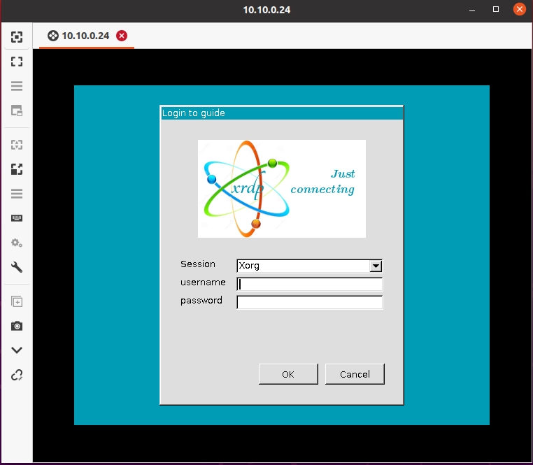 The connection can be made via any RDP tool, connected with IP:PORT. When connecting you will be asked for the login data: